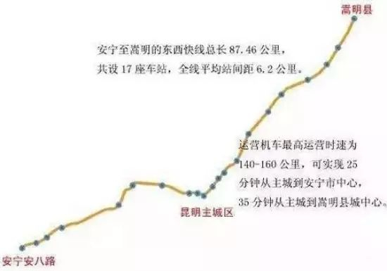 安宁—嵩明线建成通车之后,将实现25分钟从安宁市中心到昆明主城、35分钟从昆明主城到嵩明县城中心。