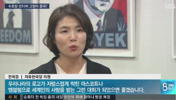 就连韩国政客也出来为自家国货“站台”。一位叫全希卿的自由韩国党女议员表示,“希望这次大会,韩国的logo可以骄傲地出现在吉祥物和徽章上,并受到全世界人民的喜爱。”