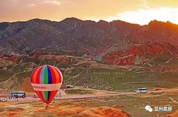你可以乘坐热气球俯瞰张掖七彩丹霞的磅礴。