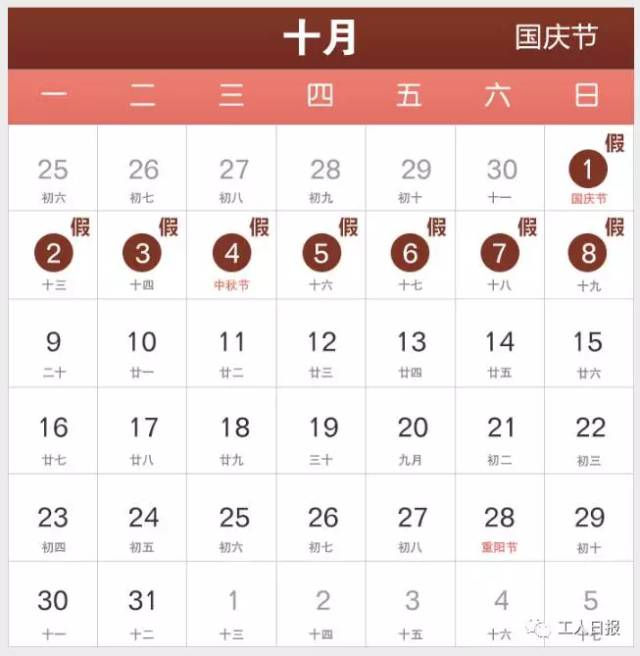 中秋节、国庆节放假调休8天