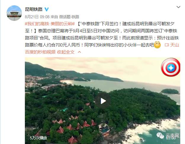 此前,昆明铁路局官方微博曾表示,建成后昆明至曼谷可朝发夕至,预计往返票价在700元人民币左右。