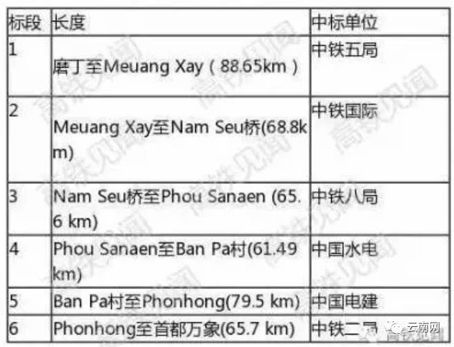 2016年9月2日,中老(中国——老挝)铁路项目公布了第1标至第5标的中标结果,加上之前公布的第六标中标结果,至此中老铁路417公里的6家中标企业均为中国企业。