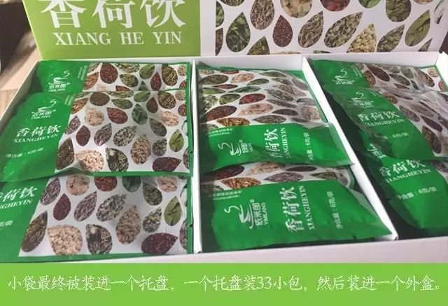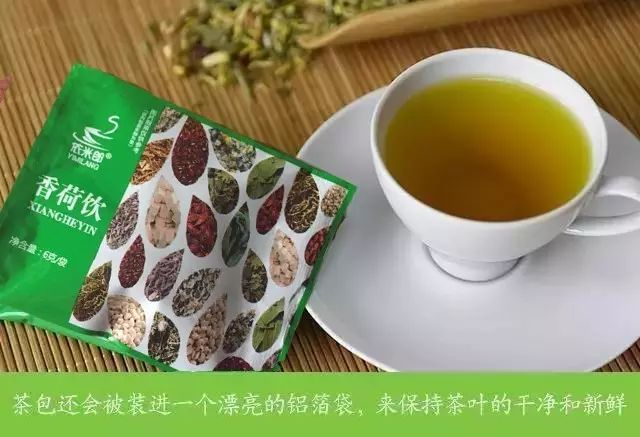 于是我们开始合作,做出了这个产品,其工艺是把15种原料按照配方的比例,精确的装进一个三角茶包里面,就类似这样: