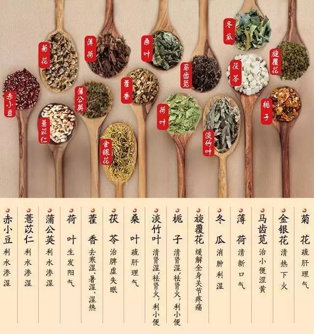 这个配方名字叫做香荷饮,由赤小豆,薏苡仁、蒲公英、冬瓜,荷叶、藿香、茯苓、桑叶、淡竹叶、栀子,显脉旋覆花、、薄荷、马齿苋、金银花,菊花15味配方组成。