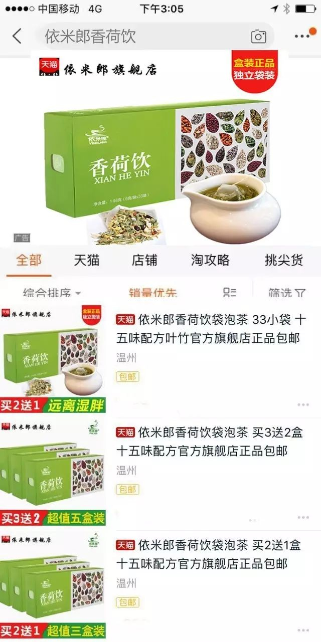 现在任何人都可以在淘宝搜索 依米郎旗舰店 或 依米郎香荷饮 买到香荷饮产品正品: