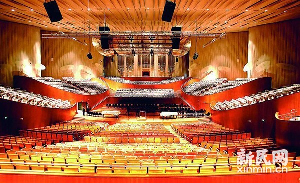 站在东艺大堂,禁不住对采用“挂件技术”装饰的墙面细细端详。这些兼具隔音和装饰作用的“挂件”,其实是一种椭圆形墙砖,120000片墙砖犹如一个个跳动的音符,用一根根线缆串联而成,像是一道道飞流泻入地板;从金黄到赭红,再到银灰,自然的色调无缝过渡,恰似高超自如的声部转换,令人回味。