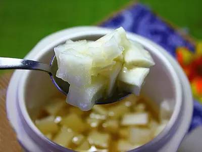 做法:将雪梨去皮,切开顶部,用勺子挖掉内核,中间放入冰糖,放回顶盖,将雪梨放入蒸锅内蒸30分钟左右,就能吃了。要坚持食用几次才可见效。