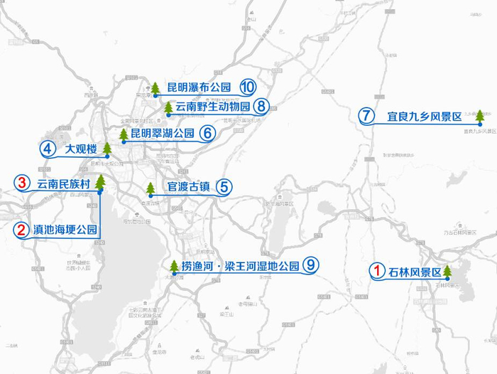 根据高德地图提供预测,我市自驾导航热门风景区依次有:石林风景区、滇池海埂公园、云南民族村、大观楼、官渡古镇、昆明翠湖公园、宜良九乡风景区、云南野生动物园、捞渔河·梁王河湿地公园、昆明瀑布公园。