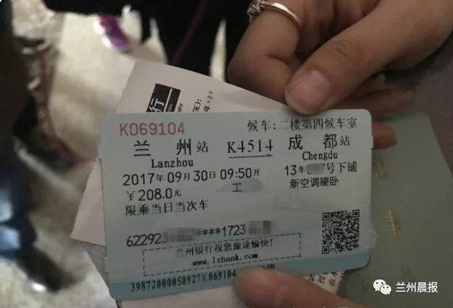 当日下午16时10分,兰州车站售出兰渝铁路的首张车票,兰州市民路珊女士幸运地买到了这张9月30日从兰州到成都,车次为K4514,票价208元的车票。