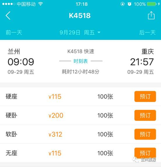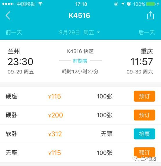此次兰渝铁路择于本月29日正式运行,重在满足“十一黄金周”旅客的出行需求,为旅客出行提供更好的服务。此外,互联网、12306 网站和火车站同时发售,暂时发售到 10 月 11 日前的车票。