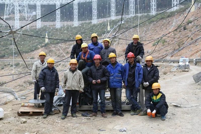 为中国“天眼”施工的工人们留影。(张蜀新摄)