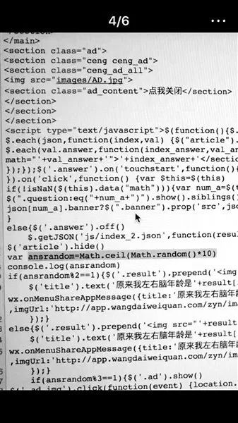 就在“左右脑年龄测试”小游戏热传后,有网友发布了一张图称,有程序员“扒出了”这个小游戏的测试代码,其中出现了可以得出随机数的代码,称左右脑年龄是随机分配的数字,而并非是根据所出题目科学分析出来的结果。