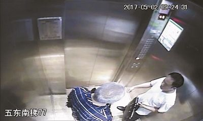 北京青年报记者从老人家属提供的监控录像看到,5月2日上午9时24分,电梯运行至14层时打开,杨欢走进电梯,此时老人正在电梯内抽烟。