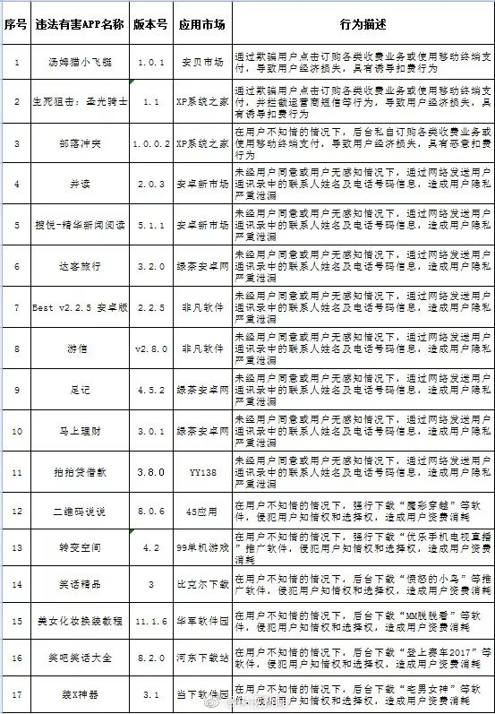 近日,广东警方发现“汤姆猫小飞艇”、“搜悦-精华新闻阅读”、“拍拍贷借款”等17款APP存在恶意扣费、窃取用户信息等安全问题。警方已通报相关发布平台,对存在问题的APP进行核查处置。