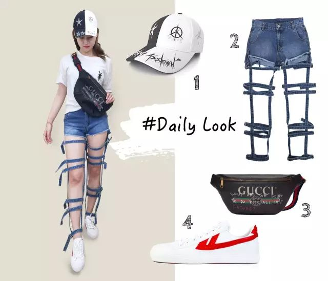 这条裤子就比较魔性了:拿下来是一条普通的牛仔短裤,接上去就是一条藕断丝连、破到褴褛的镂空绑带长裤!#有大长腿就是任性啊!