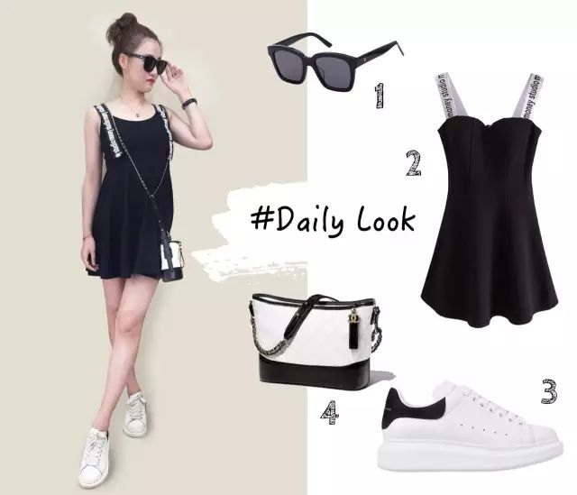 如果想要优雅些,黑白配是绝对不会错的。一条小黑裙胸部以下全是腿,再搭配上小香包和小白鞋,就可以出去扫街了!