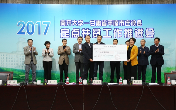 会上,平凉市庄浪县县委书记徐毅作了五年定点扶贫工作的情况汇报。会后,甘肃省平凉市党政干部工作组还参观了南开大学校园内的西南联合大学纪念碑,观看了校史展览及人文社会科学创新成果展。