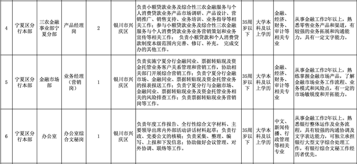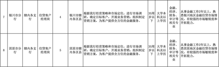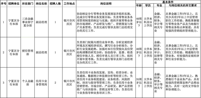 根据邮储银行宁夏分行发展需要,为加强人力资源队伍建设,提升企业管理运营能力,现面向社会公开招聘工作人员。