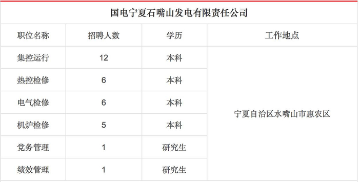 本次招聘涉及电气,能源动力,机械,控制,计算机通讯,化学化工,工程管理,新能源,水电,采矿,财经,人力资源,其他等13个专业类别,设置生产运行、生产检修、管理、科研、其他等五大类岗位。