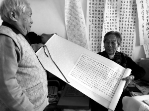 赵学品喜欢书法,每天坚持写毛笔小楷 ■华商晨报记者 杨晓明 摄 本报讯(华商晨报记者 杨晓明)他是慢性子,做事不紧不慢,啥愁事都一笑了之,他是92岁的爷爷,叫赵学品。 她是急性子,做事干净利索,年轻那会儿纯是“女汉子”,她是89岁的奶奶,叫贝玉兰。 “慢性子”和“急性子”结婚71年,他们的爱情牵手超越了大半个世纪。爷爷看重奶奶的“容貌”,奶奶崇拜爷爷的“才华”,若用一句话概括他们的恩爱经历,无非是那句“你在闹,他在笑,如此温暖过一生。” 夫妻相处 对方生气时及时妥协 这对老夫妻家住在沈阳市和平区市府社区,他们刚刚过完71年的结婚纪念日。 昨日,见到记者,老爷子笑呵呵地迎接,落座后,他很直接地说:“想问点什么,孩子,我可以给你讲讲。”随后,他拉起老伴的手十指相扣。 临来前,市府社区的书记张日红就介绍,赵学品老人和蔼可亲,性格很开朗,是个可爱的“老顽童”。 “他们经常到社区参加活动,也会经常到八一公园散步,每次见到他们都是手拉手,感觉特别特别温馨。” 真如社区书记所说,老两口的感情果然如此。 “老两口,没红过脸,结婚71年,做儿女的没看过他们吵架。”三女儿赵荣波介绍,家里姊妹五个,年轻时爸爸一心扑在工作上,家里的事都是我妈妈一人包揽。爸爸工作忙,家务事一点顾不上。“我妈是急性子,又能干。以前总说我爸是油瓶子倒了都不扶起来的主儿。但听我妈唠叨,他不吱声,冲我妈笑呵呵就当啥事都没有。”赵荣波说。 但是,老爷子赵学品发脾气的时候,奶奶贝玉兰又成了“小绵羊”。 因为赵学品每天练字不喜人打扰。有时,奶奶出门忘带钥匙,就使劲敲门,爷爷写入神时就听不见,或者是“懒得开”。等把门打开的时候,爷爷就会耍脾气地说:“我这写字需要运笔,换一行或者停下来字体就不一样了,怎么又不带钥匙……” 看到爷爷生气,一向脾气大的奶奶又会“乖溜溜”地说:“别生气啦,我以后就把钥匙拴裤腰带上行了吧。” 一段婚姻中的两个人最需要学会的就是如何沟通。老夫妻的相处方式让很多人羡慕,结婚71年,两个人从来没有过激烈的争吵甚至是冷战,而是选择在对方生气时,及时妥协,让对方有气及时消除。也许,这就是最好的沟通方式。 持家有方 勤劳简朴 体贴对方 聊得很投缘,赵学品就打开了话匣子。他对记者说,“给你讲讲我们的故事”。 赵学品介绍,他结婚那年21岁,老伴17岁,是他三大娘给介绍的。当时掀开红盖头时,他觉得“这女孩真是漂亮的美人。”由于,年轻时生活条件艰苦,自己上班,家里10来张嘴等着吃饭,“家里都是她一个人操持,那真是挺不容易。” 感念妻子的不容易,赵学品对妻子特别体贴,家里的事都由她说了算。 现在生活好了,老两口的退休金也很丰厚,有时赵学品想下顿饭馆,还得跟老伴打请示。 贝玉兰节省不愿跟老伴出去吃,但总会同意他自己到饭馆“解馋”,可每次赵学品前脚刚想迈进去,又缩回来,“她不吃,我也不能自己一个人享受。得,回家跟老伴一起吃。” 彼此欣赏 互赞对方美丽和才华 说起恩爱,老伴贝玉兰满是皱纹的脸上显出了少女般的娇羞,她一边笑着一边往老伴的身后躲,“没有那么浪漫,不过他疼我我是知道的。”贝玉兰说,“我大字不识一个,老头子有才,能写稿,还会写毛笔字。”然后,她指着墙上挂着的字画,“这都是老伴写的,那屋还有很多呢。” 如今,赵学品身体很硬朗,每天坚持写毛笔小楷。“有时候,他写上瘾能在屋子写一天。”贝玉兰说,“有时候我说他多累眼睛啊,要写写大字,写这么小的字累不累眼睛。”她翻出老伴写的一幅幅字,“写了好几卷了,有很多还在柜子里放着呢。” 赵学品借机说:“老伴啊,写字能陶冶情操,还能锻炼我的手脚,还能防止小脑萎缩,我得照顾你呀。” 不赞成老伴写毛笔字是心疼她,但贝玉兰心里对老伴很崇拜。采访间,她说了很多次:“俺老头能写,识字,人家有知识。”而赵学品偷偷地告诉记者:“俺老伴年轻时候是大美人。你看我又矮又黑的,但俺老伴从来没嫌弃过,从来没跟我提过离婚。” 长寿之道 家庭和睦 清淡饮食 问起老人的长寿秘诀,他们的家人认为长寿原因和老人心态好,喜食粗茶淡饭有关。 “俗话说家和万事兴,所以我们兄弟姐妹从来都没给父母气受,大家都很乖,父母很长寿,我们很开心。”赵荣波说,“他们都是互相心疼和疼爱,他们不吃什么大鱼大肉,就爱吃蔬菜。” 赵学品说讨老伴开心,他能讨到“点子上”。 他说,老伴简朴一辈子,就是舍不得花钱。只要不花钱她就会很开心。所以,餐饭以素菜为主,挑超市打折的菜买,前几天超市芹菜打折,我买回来包饺子,老伴特别开心。平时运动就去公园溜达,手拉手唠唠年轻时候的事儿。 赵学品和贝玉兰相濡以沫71年,感情一直非常好。 采访结束时,记者表示要拍照。并希望他们抱着沙发后面的“大红心”,结果,赵学品以为是让他抱着老伴,“抱就抱呗,我乐意抱一辈子!”赵学品一把将老伴搂在怀里,笑呵呵地提醒着:“老伴,笑得开心点。” 这份幽默,逗得在场的所有人也跟着幸福地笑了。 |