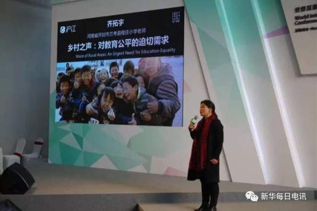 2016年11月18日在浙江乌镇第三届世界互联网大会,齐美霞作为乡村教师代表发言
