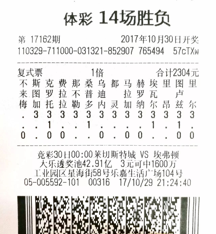 足彩也能中出千万大奖,江苏的一名购彩者便创造了历史。在史上最强3.12亿元派奖的加持下,来自苏州的华先生在10月30日开奖的第17162期14场胜平负中,独揽1注1000万元的大奖,成为足彩单注奖金第一人,创下了足彩发行16年以来的又一项新的纪录。