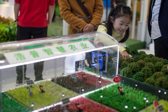 在7号场馆,智慧农业吸引市民参观。张玉杰 摄