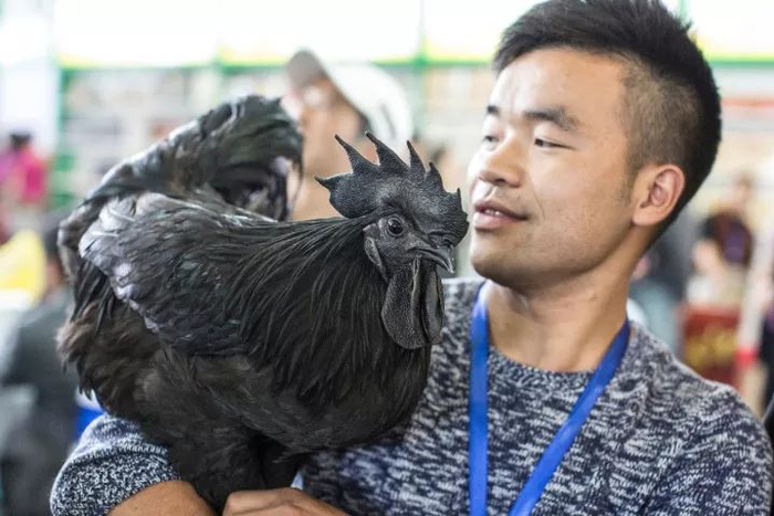 在昭通馆,来自盐津县的参展商带来了盐津乌鸡。乌鸡通体黝黑,十分稀奇。 资渔 摄