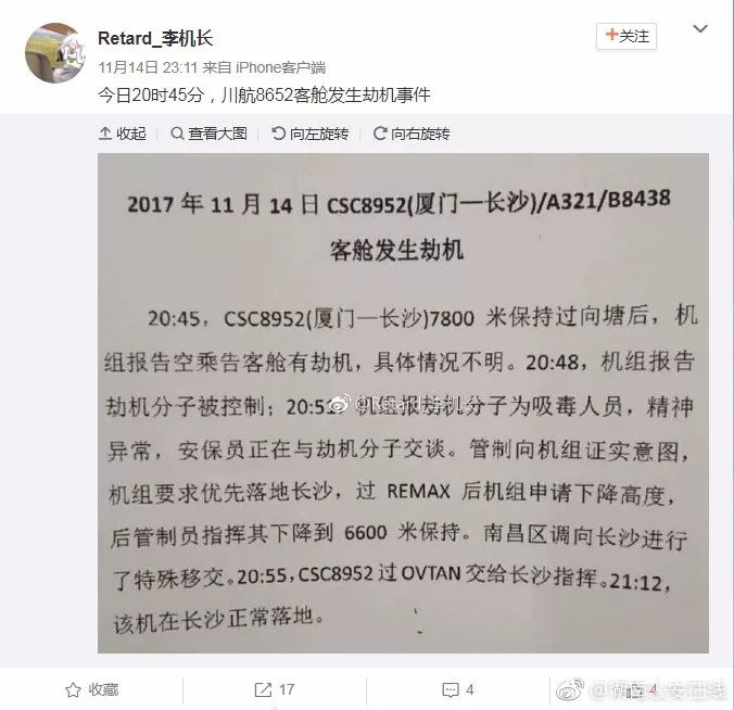 啊?!昨晚厦门飞长沙航班疑发生劫机事件?警方最新通报!真相竟然是……