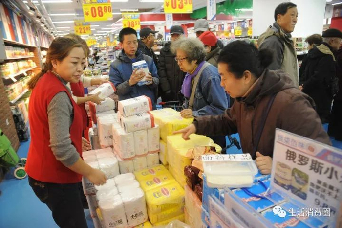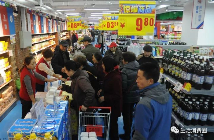 “看报纸说特价活动马上就要结束了,我跟老伴儿趁着今天天气好,特意拉了小车过来,买点儿米面粮油。”徐阿姨坐在卖场外的椅子上,把一样样商品装进手拉车里,“前几天我就想过来,又怕自己来东西太多拎不回去,跟老头子商量好几天才同意陪我过来。”徐阿姨告诉记者。