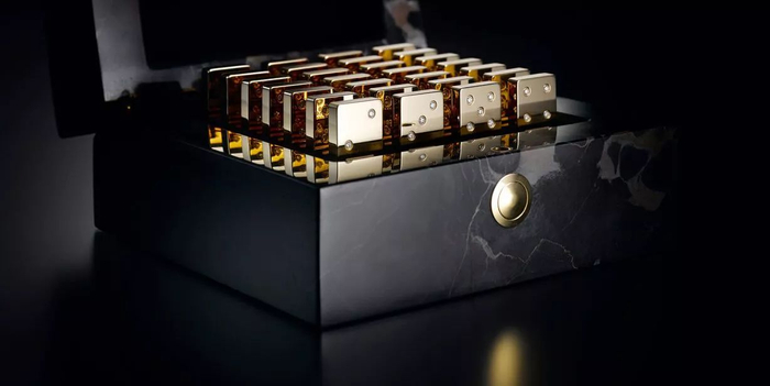 骨牌一种西方游戏,它将许多长方形的骨牌竖立排列成行,轻轻推倒第一张牌时,其余骨牌将依次纷纷倒下,后来也有“骨牌”效应这种说法。然而在德国公司Lieb Manufaktur看来,只有贵重的骨牌才能吸引喜欢骨牌游戏的有钱人购买。他们下一步想推出一系列用黄金还有168颗钻石做成的骨牌,连盒子也要用大理石!