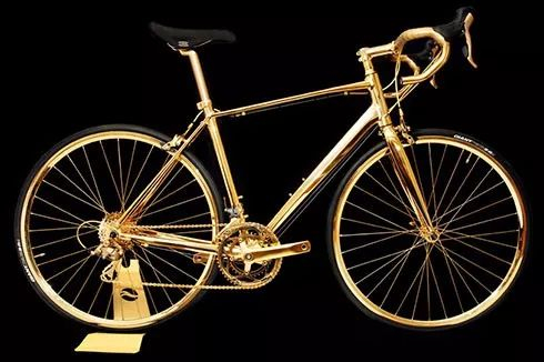 宁愿坐在宝马里面哭,也不坐在自行车后座笑,这句话对于这辆自行车来说并不适用。这台由奢侈品公司gold genie出品的自行车使用黄金打造。它原本只是一款供竞赛的男款自行车,然而在给它镀上了一层24K纯金,以及连车链和其它小零件也都由黄金打造之后,它马上就变成这样一部不失面子的黄金自行车。