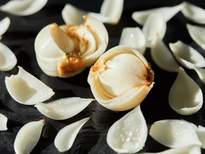 稍微搓洗以后,用刀切去残留的一点儿根和瓣尖枯黄的边儿,然后一瓣一瓣掰下来再清洗就可以了。
