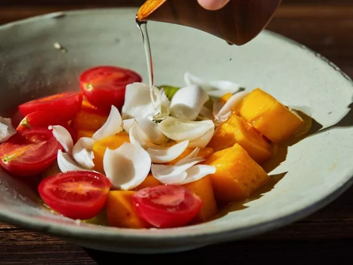 清洗干净后,和水果一起做成百合水果沙拉,简简单单、原滋原味,就很好吃了。