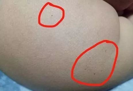 据多名红黄蓝(新天地分园)家长反映,孩子腿部、屁股、腋下出现针眼。图片源于学生家长