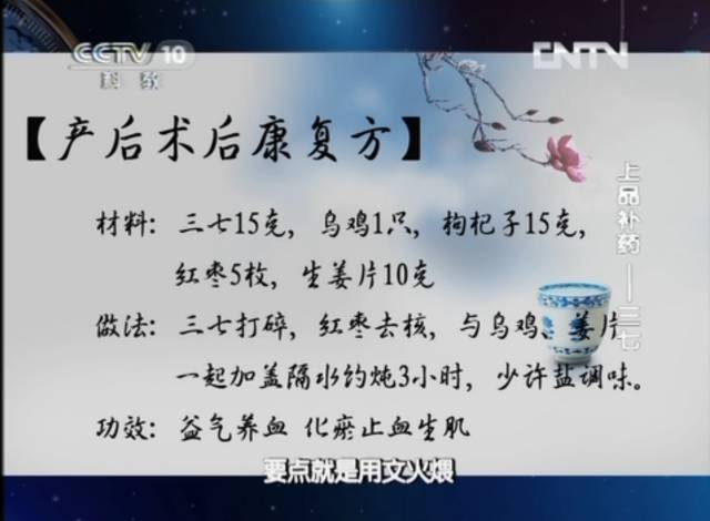 具体做法就是做好吃的“三七炖乌鸡”,一般一周两到三次,时间一个月左右,术后恢复的目的就能达到了。
