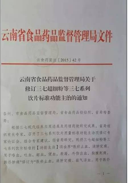 对于三七的活血功效,云南食品药品监督管理局是这么表述的:“可用于气虚血瘀、脉络瘀阻、胸痹心痛、中风偏瘫,气虚体弱;高血压、冠心病、脑卒中、高脂血症、糖尿病血管病变、免疫功能低下见上述证候者”。