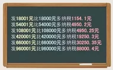 一旦遭遇了计税的临界点,可能会出现“多发少得”。如某职工能拿到18000元的年终奖,那么其应纳税为540元,若多拿1元年终奖的话,其应纳个人所得税为1695.1元。