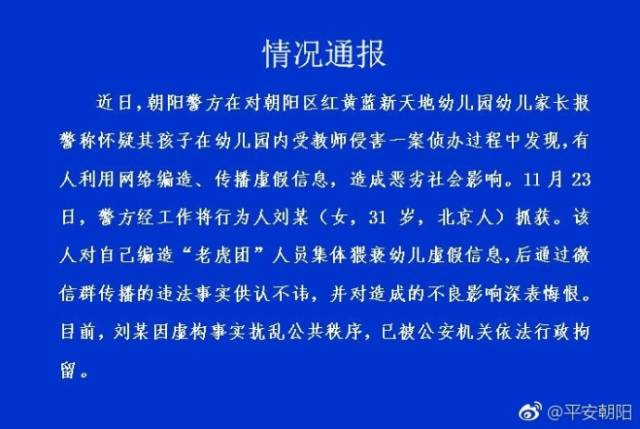 编造“老虎团”猥亵幼儿谣言,北京女子刘某被行政拘留