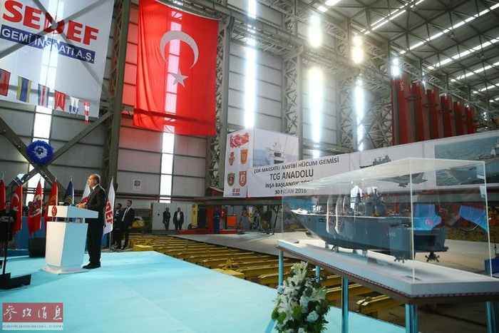 土耳其媒体称,新型两栖攻击舰全长225米,宽32米,满载排水量28000吨。