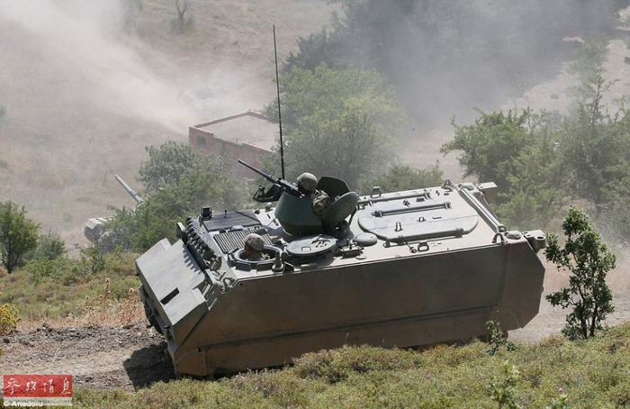 土陆军M113装甲运兵车参演,下方还能看到一辆主战坦克的炮管。