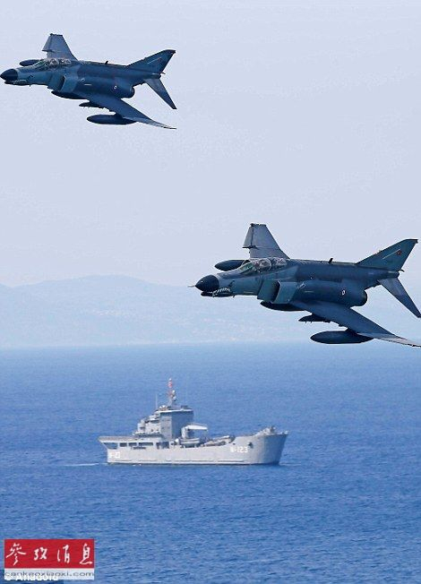 土空军2架F-4战机演练低空突防,背景可见土海军坦克登陆舰。
