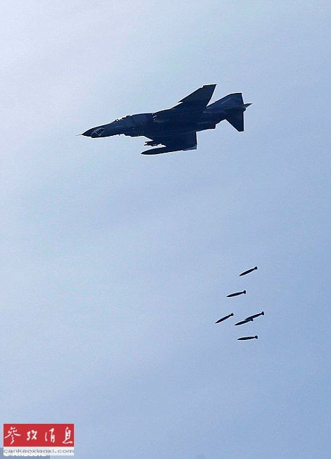 土空军F-4“鬼怪”战机投放的Mk-82炸弹准确命中目标。
