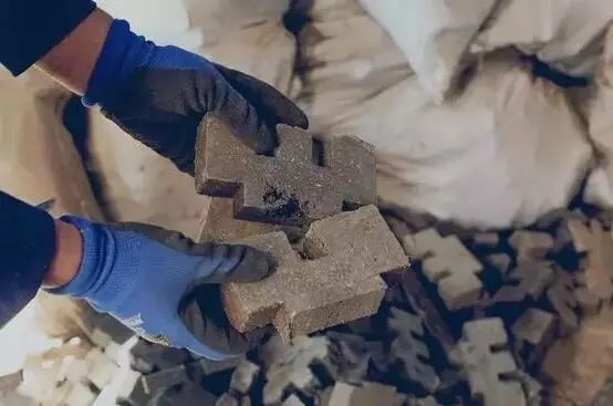 最后再把它们融进预先准备好的模具中,一块垃圾制成的砖块就初步成型啦。