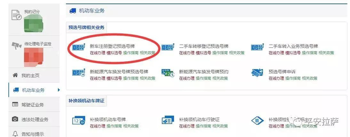 ②预选到机动车号牌后,在选号岗办理选号业务时,需提前告知民警为互联网预选号码用户,否则将按传统选号流程进行,网上选号作废,其它流程环节均与传统选号环节一致。