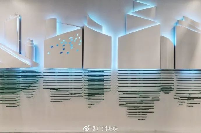 知识城线的知识城站,由于地处知识城新区,整个车站以“纸张”、“现代建筑”和“文字”等传统、现代的元素为表达载体,相互交织碰撞,营造出极具艺术与设计感的智慧之城。