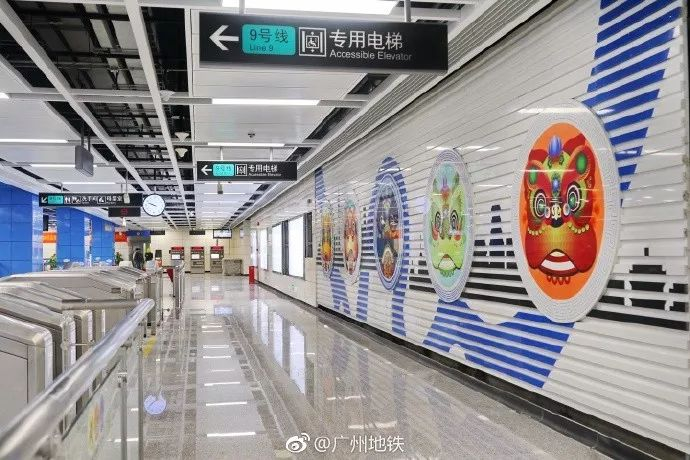 地处花都的九号线广州北站,将醒狮作为设计主体,展示了广东人民筚路蓝缕、奋发进取的精神。据了解,醒狮属于中国狮舞中的南狮,是民间体育艺术的典型代表,2009年花都区政府公布南狮入选区级非物质文化遗产。