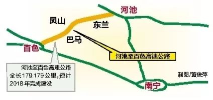 前天,媒体记者从广西交通投资集团获悉,河池至百色高速公路将于2018年建成通车,东兰、巴马、凤山三县都将告别不通高速公路的历史。届时,从南宁自驾车到巴马玩仅需3个半小时。
