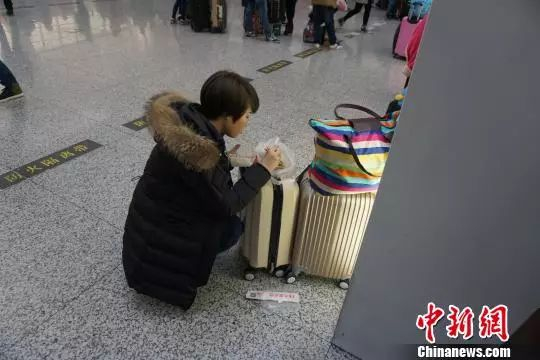图为旅客蹲着吃饭。施佳秀 摄