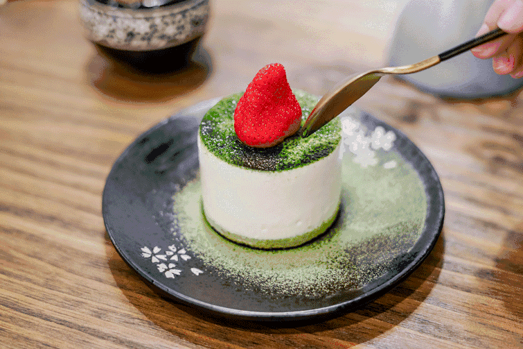 浓厚的抹茶甜品带着清新的苦味,吃后会在口中长久地留存着淡淡的甘醇。